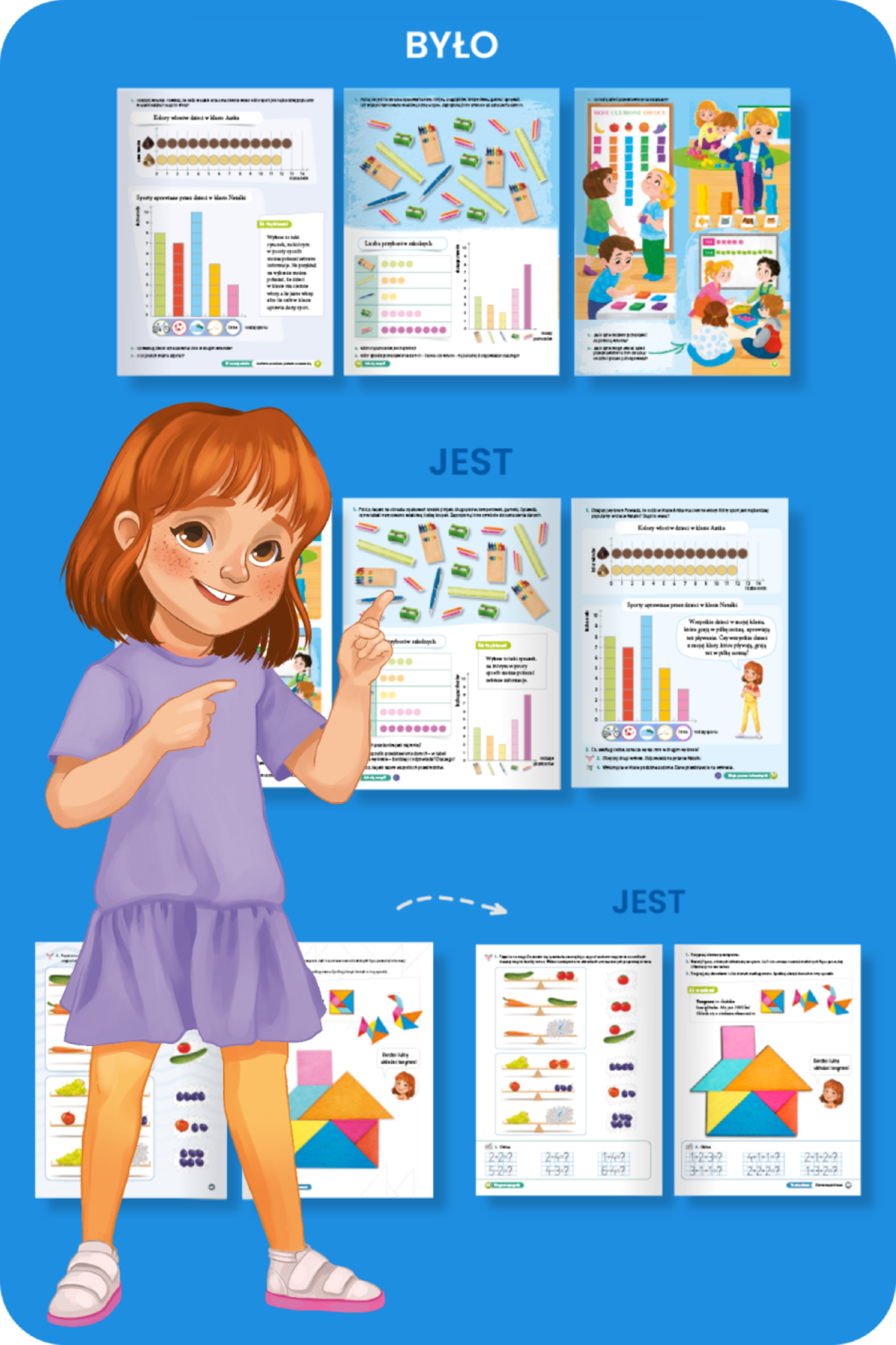 - Zmieniliśmy układ zadań, aby uporządkować treści i dodaliśmy zadania zmniejszając np. wzory tangramu