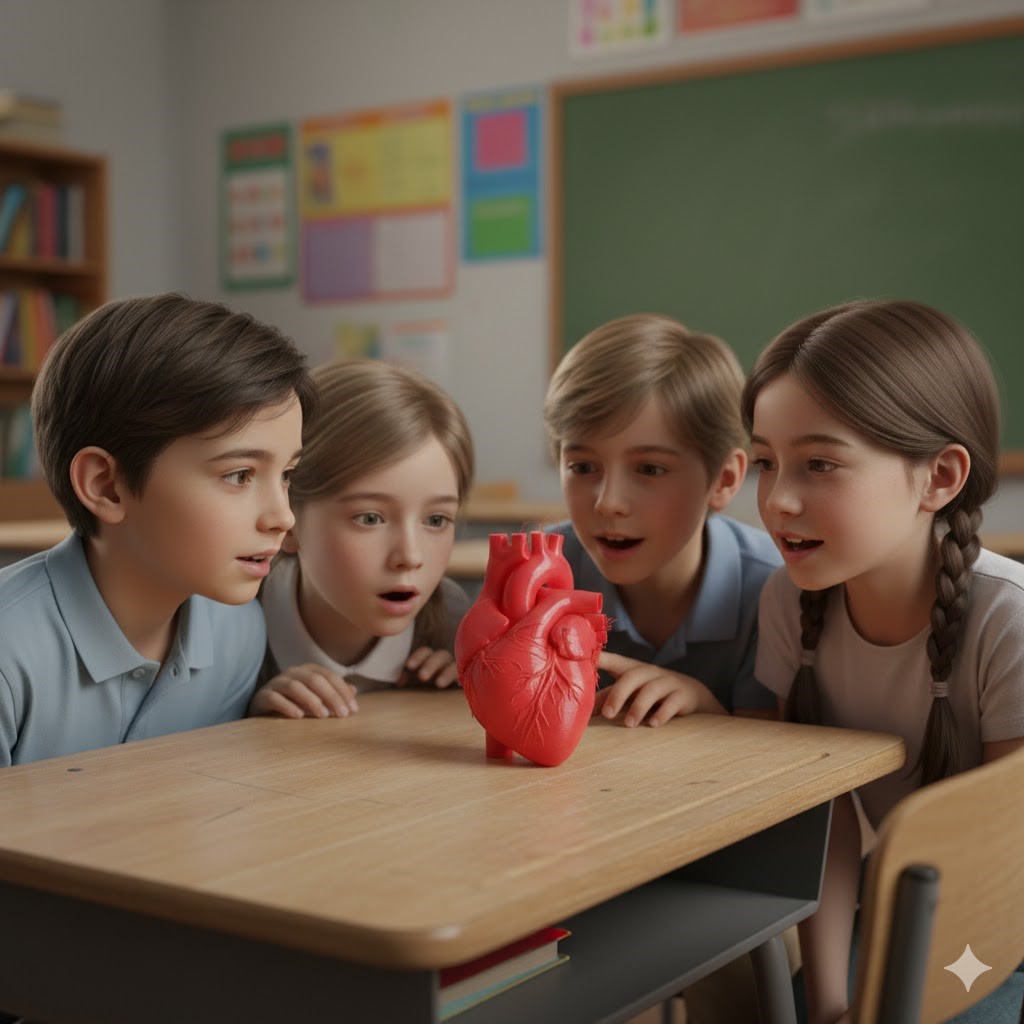 Uczniowie mogą wydrukować model struktury komórkowej, organu czy układu szkieletowego (np. model serca, mózgu, cząsteczki DNA, szkielet). Można projektować lub pobierać gotowe modele i pokazywać ich budowę krok po kroku.