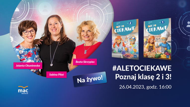 Zapraszamy na wyjątkowy LIVE z autorkami ALE TO CIEKAWE! Już 26.04.2023 o 16:00 będziecie mieli niepowtarzalną okazję dowiedzieć się wszystkiego na temat podręczników i zeszytów ćwiczeń do 2 i 3 klasy z naszego najnowszego cyklu! Nie możecie tego przegapić!