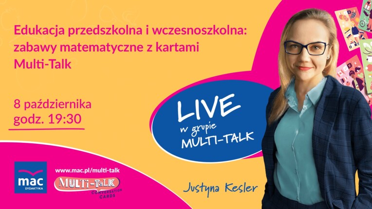 Piktogramy na kartach Multi-Talk to nie tylko źródło językowych zabaw. To także nowoczesny sposób na wizualną matematykę. Dołącz do tego LIVE'a jeśli szukasz pomysłów i inspiracji na atrakcyjne i skuteczne zabawy matematyczne dla Dzieci. LIVE dedykowany Edukatorom i Nauczycielom edukacji przedszkolnej i wczesnoszkolnej.