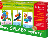 Edukacyjna układanka obrazkowa Litery Sylaby Wyrazy Adamigo Zestaw zawiera 136 dwustronnych kartoników, z których można wyodrębnić cztery zestawy: 72 kartoniki, z których można ułożyć 24 puzzle z trzysylabowymi wyrazami, 64 kartoniki, z których można ułożyć 32 puzzle z...