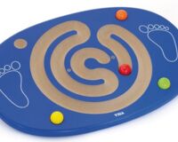 Sensoryczna drewniana deska do balansowania z labiryntem 50668 Viga Zabawa polega na prowadzeniu poprzez labirynt jednej z 4 kolorowych kulek, stojąc w wyznaczonym miejscu na dysku i balansują ciałem. W zależności od stopnia wyćwiczenia można dodawać kolejne kulki do prowadzenia,...