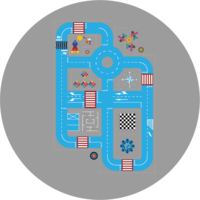 wymiary 20 m x 30 m Miasteczko ruchu drogowego wykonane jest z farby drogowej przeznaczonej do cienkowarstwowego poziomego oznakowania dróg, placów, parkingów i innych miejsc o nawierzchni bitumicznej, betonowej, po których poruszają się pojazdy lub piesi. Farba jest wyrobem szybko schnącym,...