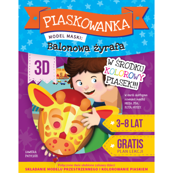 Przestrzenny model maski do samodzielnego złozenia i pokolorowania przez dziecko kolorowym ekologicznym piaskiem. Gratis wieloforma- towy plan lekcji.