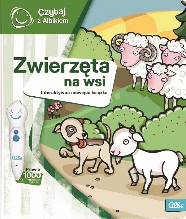 Czytaj z Albikiem. Książka Zwierzęta na Wsi W wiejskim gospodarstwie nigdy nie jest nudno! Przekonaj się sam i sięgnij po książkę Zwierzęta na wsi. Poznasz w niej mieszkańców zagrody i ich zabawne perypetie. Dowiesz się jak mieszkają, co jedzą i jakie mają zwyczaje. Zwierzęta przemówią do ciebie swoimi głosami, a dodatkowo w każdym rozdziale czekają na ciebie zagadki do rozwiązania. Prawie 1000 dźwięków i tekstów Czytaj z Albikiem to edukacyjna seria książek z mówiącym piórem. Dzięki pióru Albik dzieci mogą usłyszeń zakodowane w książkach informacje, dźwięki i dialogi. W każdym rozdziale na dzieci czekają quizy i zagadki. Dzięki Albikowi dzieci od razu dowiadują się, czy ich odpowiedzi są poprawne.