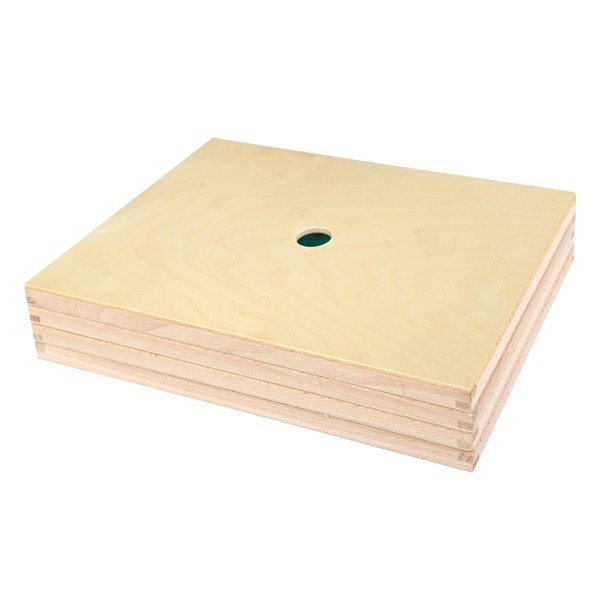 Drewniana pokrywka do tacek, Pilch Pokrywka jest uzupełnieniem tacek. Pozwala zamknąć cały zestaw zapobiegając wysypaniu się piasku czy kaszy. Do zestawu tacek ułożonych w stos wystarczy jedna pokrywka. Drewniana pokrywka o wymiarach ok. 32x23,5x0,5 cm