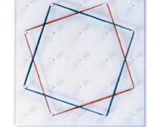 Transparentny geoplan, na którym znajduje się siatka kołeczków 5 x 5. Geoplany można wykorzystywać do celów demonstracyjnych na rzutniku pisma lub ćwiczeń indywidualnych i grupowych.