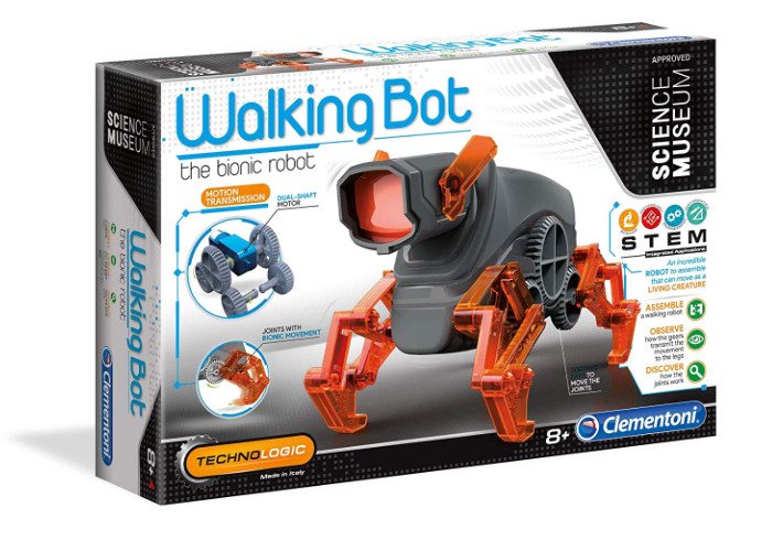 Interaktywny robot Walking Bot 50059 Clementoni Chodzący Robot to zestaw naukowy do stworzenia sympatycznego małego robota w prosty i zabawny sposób! Zawiera 40 części, które można zmontować, aby ożywić małego robota. Silnik dwuosiowy działa na różnych biegach, umożliwiając chodzenie robotowi. Dzięki ruchomym stawom mały robot porusza się i chodzi jak prawdziwy bioniczny czworonożny przyjaciel! Zilustrowana instrukcja zawiera wiele informacji, które pomogą dziecku w montażu robota i wprowadzają w świat robotyki.