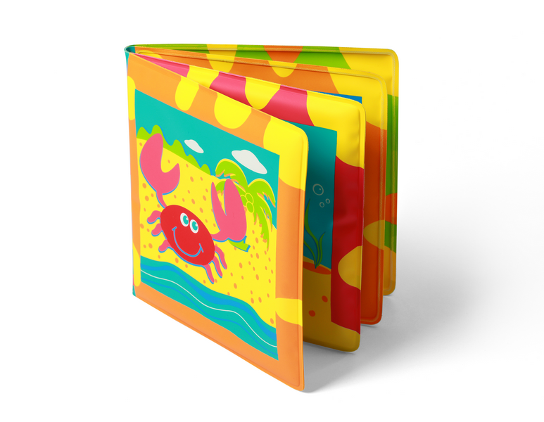 Książeczki edukacyjne wykonane z bezpiecznych, trwałych i nietoksycznych materiałów. Idealne w zabawach domowych, podróży i kąpieli. Przeznaczone dla dzieci od 6. miesiąca. Wymiary: Ocean 12,5 x 13 cm; Żółw 15,5 x 11 cm.