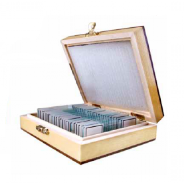 Komplet 25 wysokiej klasy preparatów biologicznych z zakresu botaniki, przeznaczonych do oglądania pod mikroskopem.