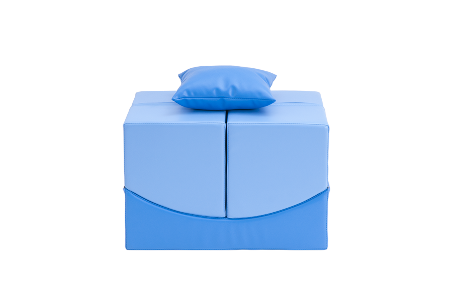 Niebieska, wygodna, składana, miękka sofka do strefy odpoczynku. Wykonana z elastycznej, odpornej na odkształcenia pianki, obszyta łatwo zmywalnym materiałem. Po złożeniu zajmuje niewiele miejsca (40 x 60 x 40 cm). Idealna do relaksu podczas zajęć, zwłaszcza socjoterapeutycznych. Wym. po rozłoże- niu: 120 x 40 x 20 cm. W zestawie z poduszeczką pod głowę.