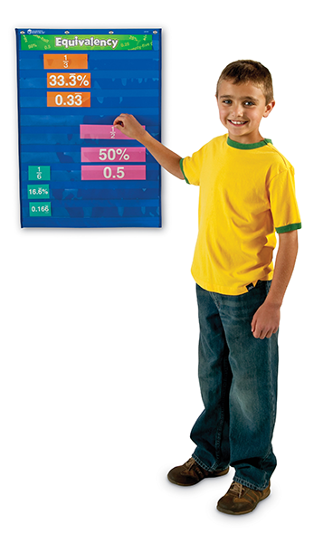 Zestaw składa się z: makatki, 3. plansz i 153. kartoników, na których znajdują się ułamki zwykłe, dziesiętne i procenty. Wymiary: 67,5 x 50 cm.