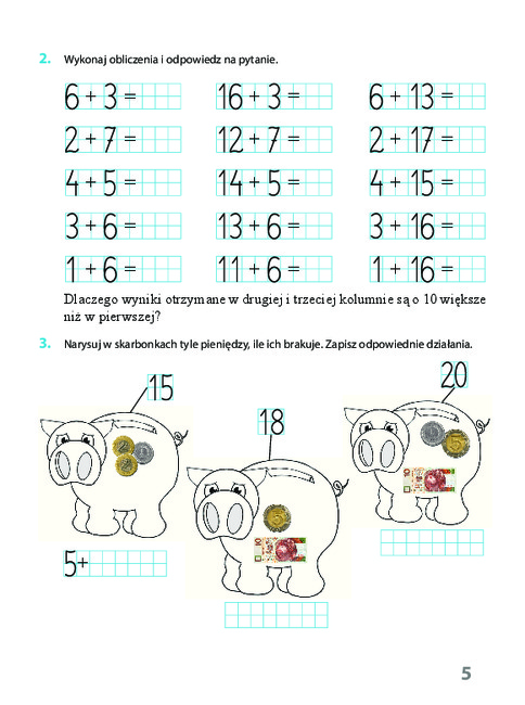 Zadania do rozwiązania to zbiór zadań matematycznych i logicznych. Są to m.in.: zadania doskonalące umiejętność dodawania i odejmowania liczb, zadania na mnożenie i dzielenie, zadania z treścią. Dodatkowo zadania trudniejsze i nietypowe są oznaczone specjalną ikoną. Publikacja wprowadza dziecko w świat umiejętności i pojęć, które pozwolą mu zrozumieć i rozwiązywać sytuacje problemowe towarzyszące mu w jego życiu codziennym.