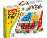 Zestaw mozaika Fantacolor Junior Basic 4195 Quercetti MOZAIKA FANTACOLOR JUNIOR BASIC zestaw zawiera kolorowe kołeczki o średnicy Ø-32 mm, z których powstają piękne mozaiki. Aby tak się stało należy jedną z 8 kart ze wzorami umieścić pod przezroczystą tablicą, a następnie...
