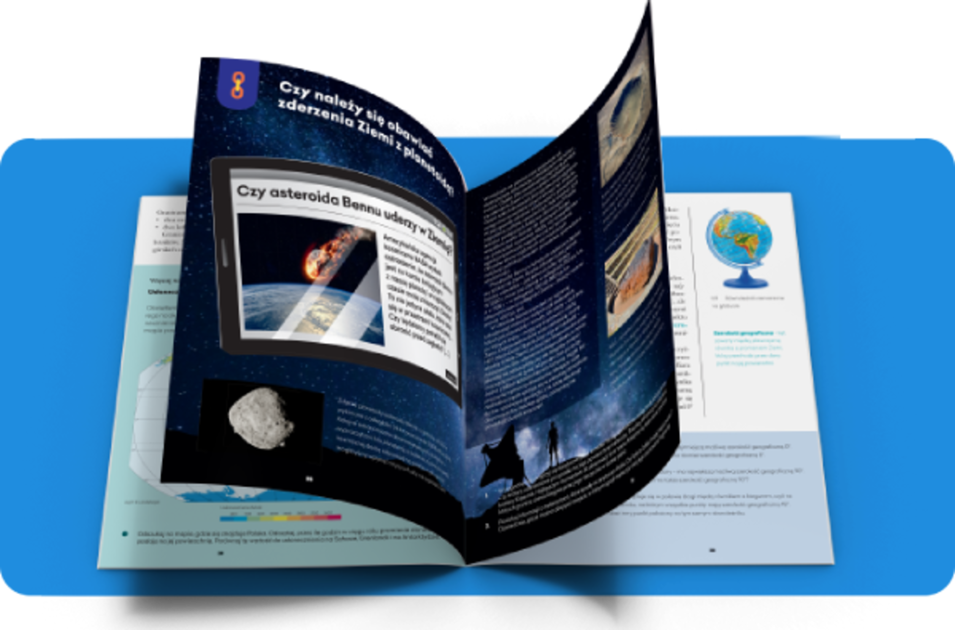 Rozbudza ciekawość poznawczą uczniów poprzez zamieszczenie w każdym temacie dużej liczby fotografii oraz rozpoczynanie każdego tematu lekcji modułem Podejmij temat – z intrygującą ilustracją bądź z pytaniami skłaniającymi uczniów do wypowiedzi i dzielenia się swoimi doświadczeniami z życia codziennego