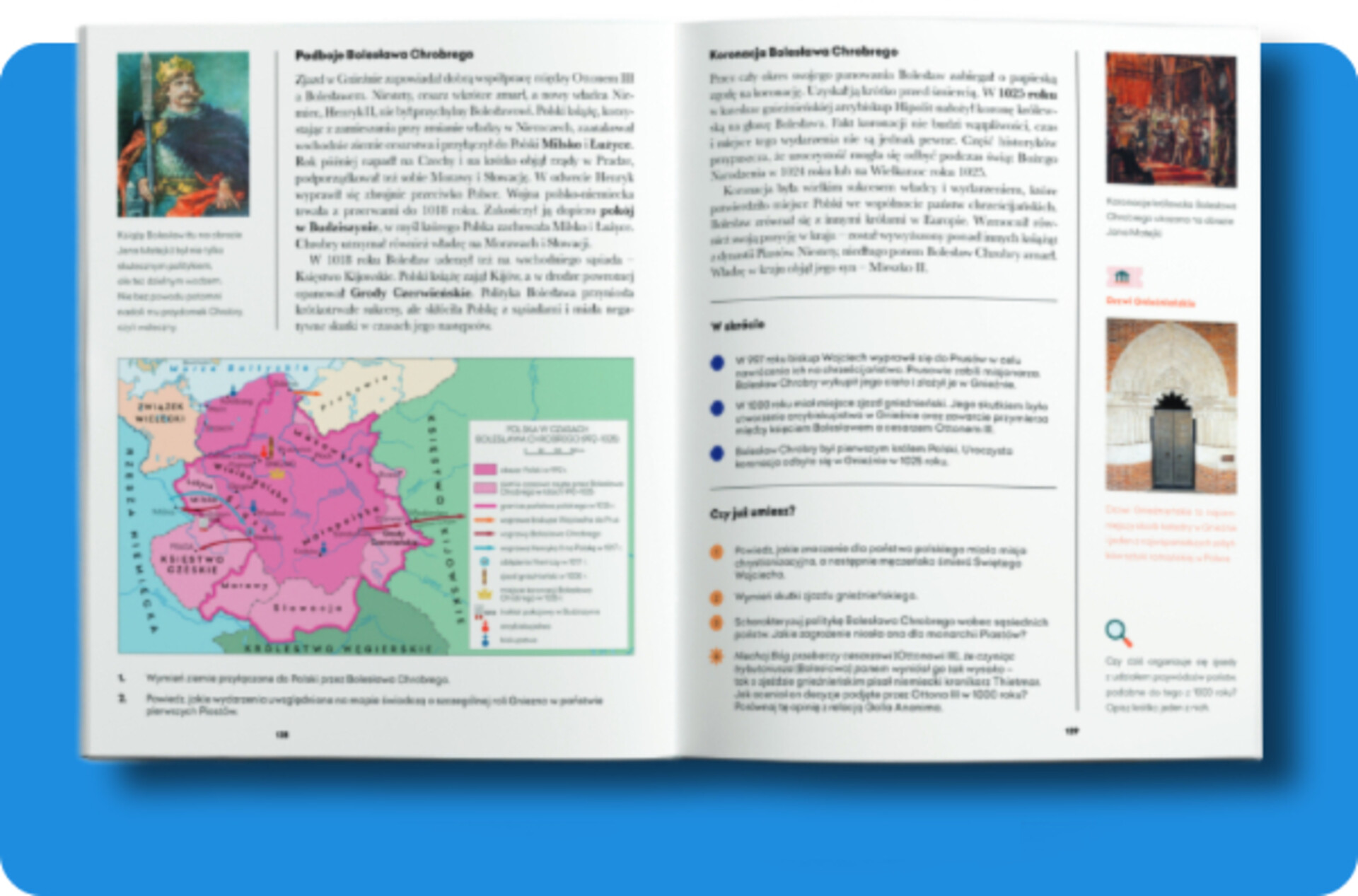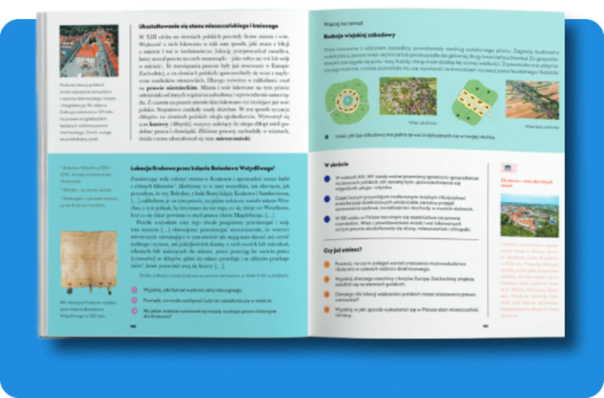 Ułatwia zrozumienie omawianych zagadnień i rozwija kluczowe umiejętności. Zróżnicowane i jasno sformułowane polecenia pomagają uczniom ćwiczyć rozumienie tekstu, analizę map, wykresów i ilustracji, a także interpretację tekstów kultury i dzieł sztuki.