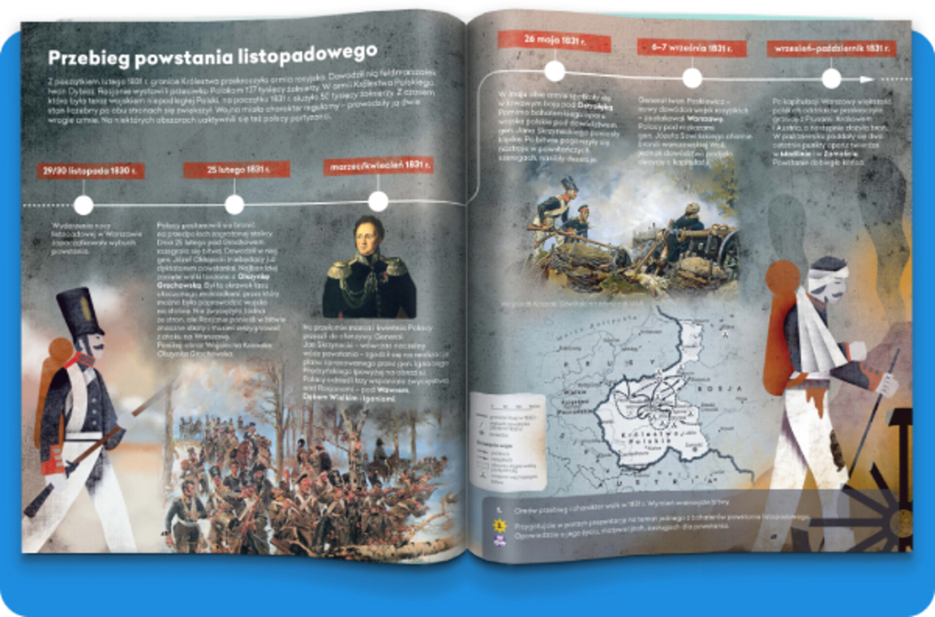 Barwne reprodukcje przybliżają uczniom kluczowe wydarzenia z historii, a ilustracje – dostosowane do ich wieku – łączą wysoką wartość merytoryczną z estetyką.