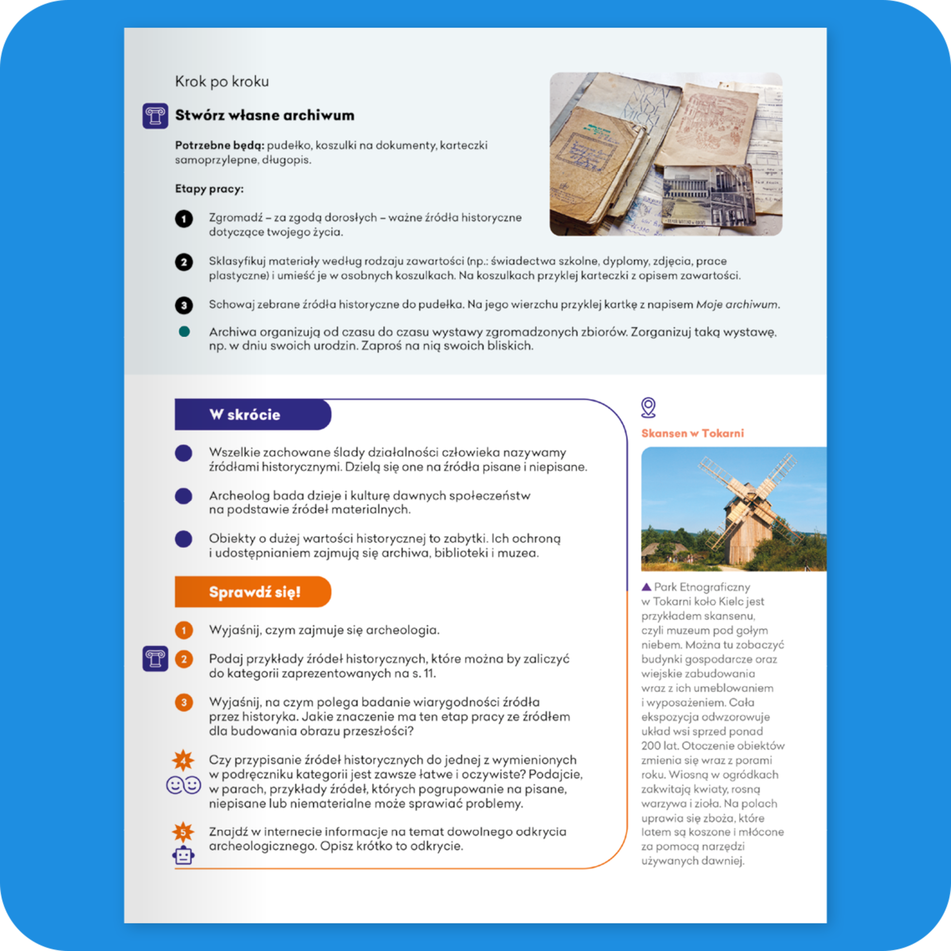 Sprawdź się! to pytania i zadania sprawdzające wiedzę i umiejętności w zakresie materiału omówionego na lekcji. Skłaniają do refleksji nad historią jako nauką, uczą krytycznego myślenia, angażują uczniów w proces nauczania i – zgodnie z założeniami nowej podstawy programowej – budują poczucie sprawczości.