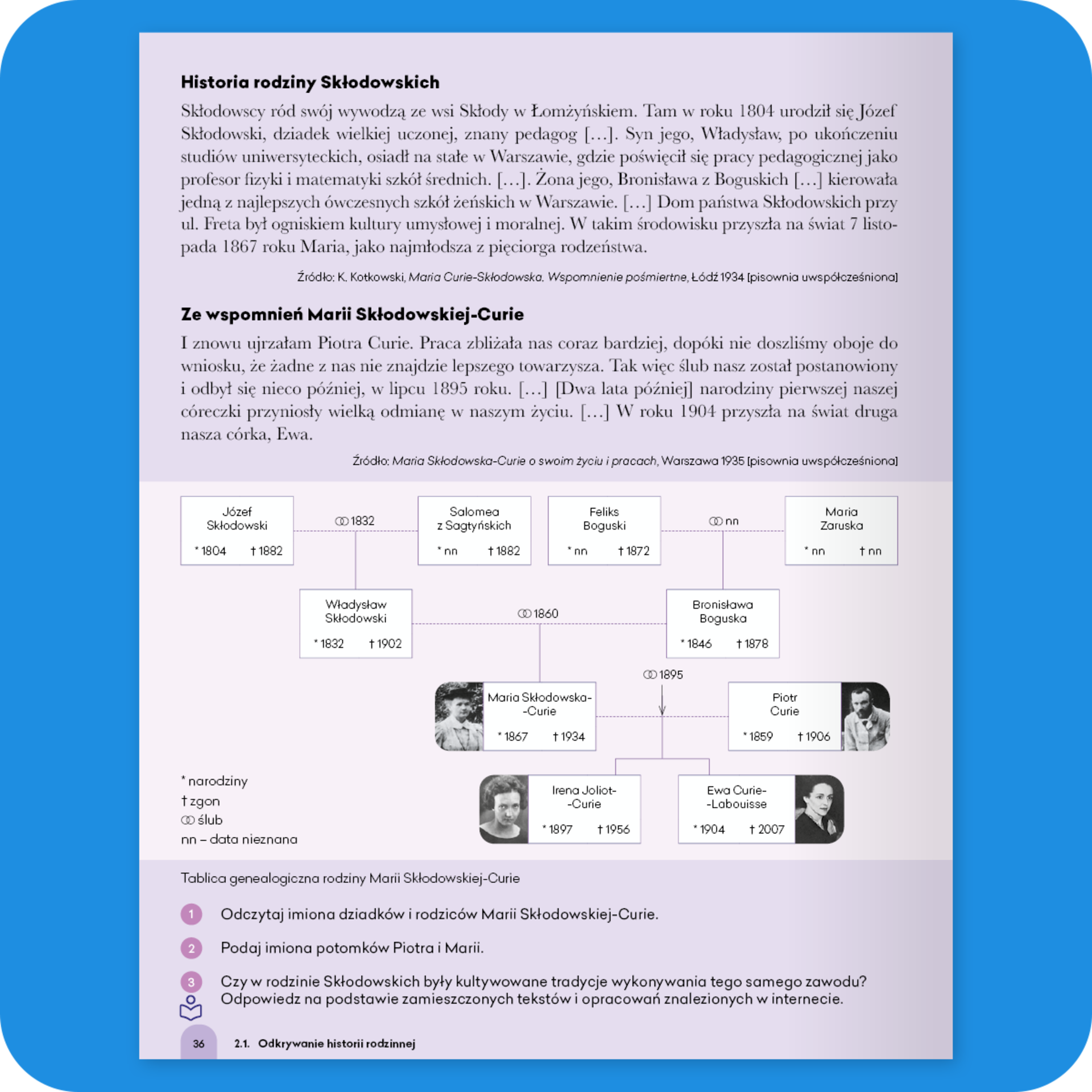 Materiały ikonograficzne zostały obudowane pytaniami i poleceniami nawiązującymi do ilustracji.