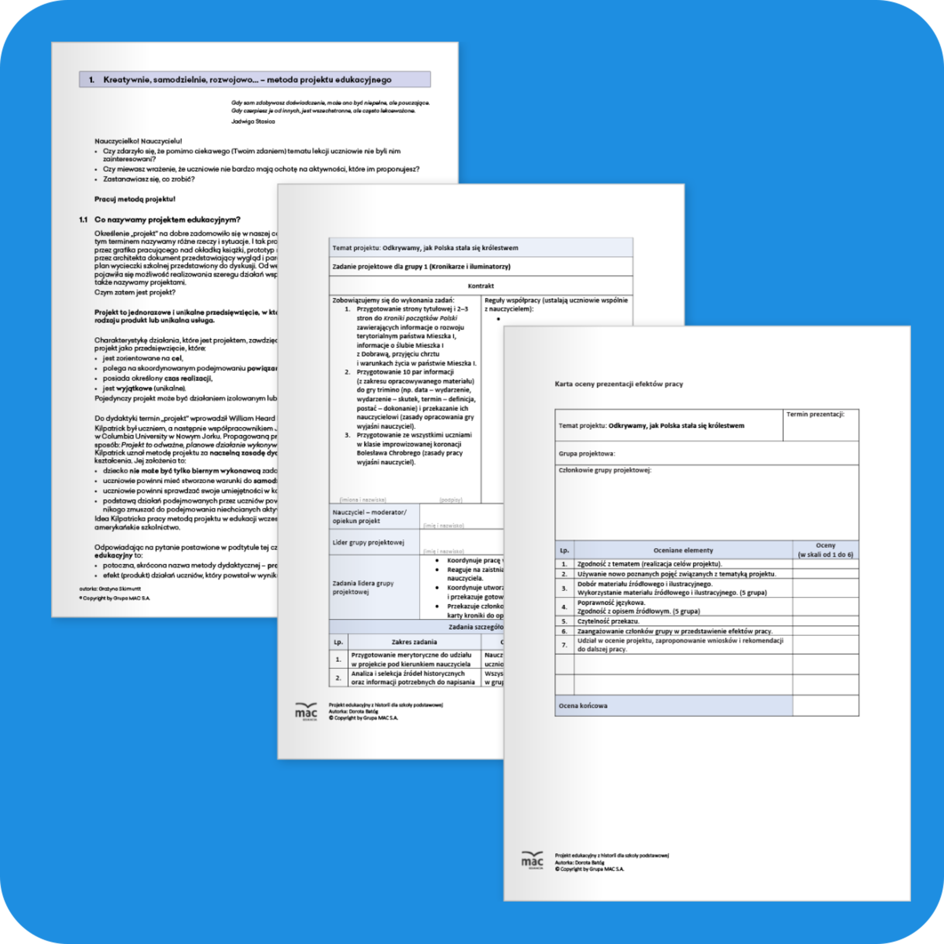 - Karta oceny prezentacji efektów projektu,