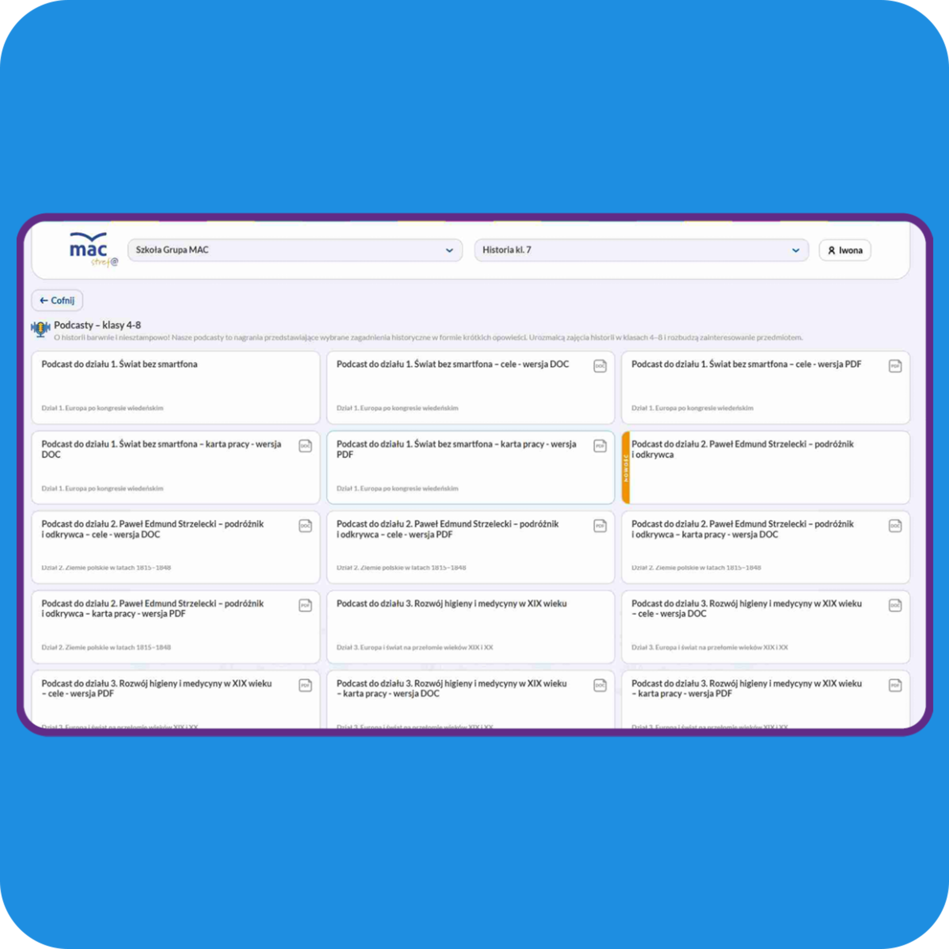 W jednym miejscu jest dostępna szeroka gama materiałów – od grafik i ilustracji, po animacje, filmy, nagrania lektorskie i teksty źródłowe – co pozwala wzbogacić zajęcia i oszczędza czas potrzebny na przygotowanie dodatkowych treści.