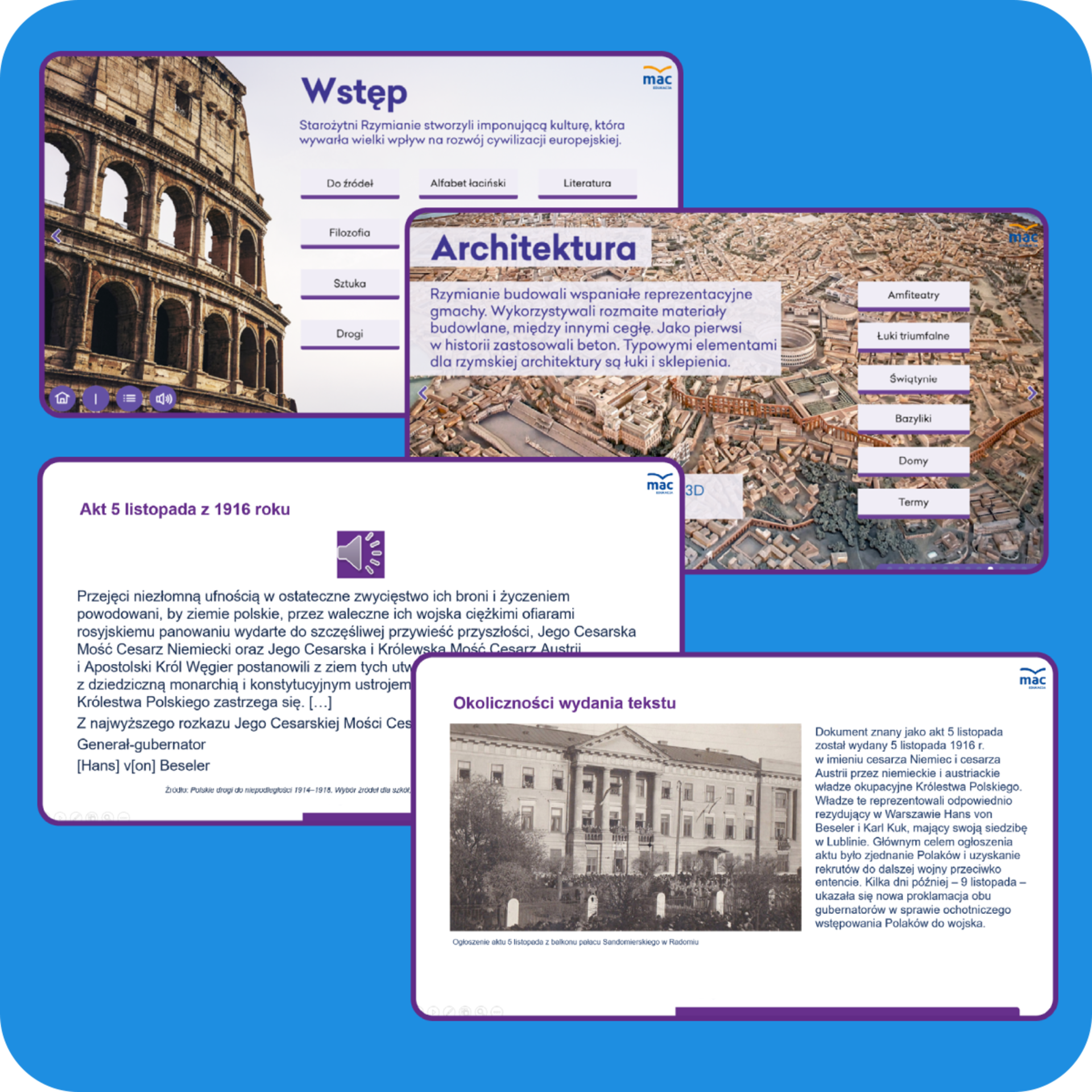 - ciekawy i atrakcyjny wizualnie moduł Zaskocz wiedzą! ukazujący korelację historii z różnymi dziedzinami nauki i sztuki.