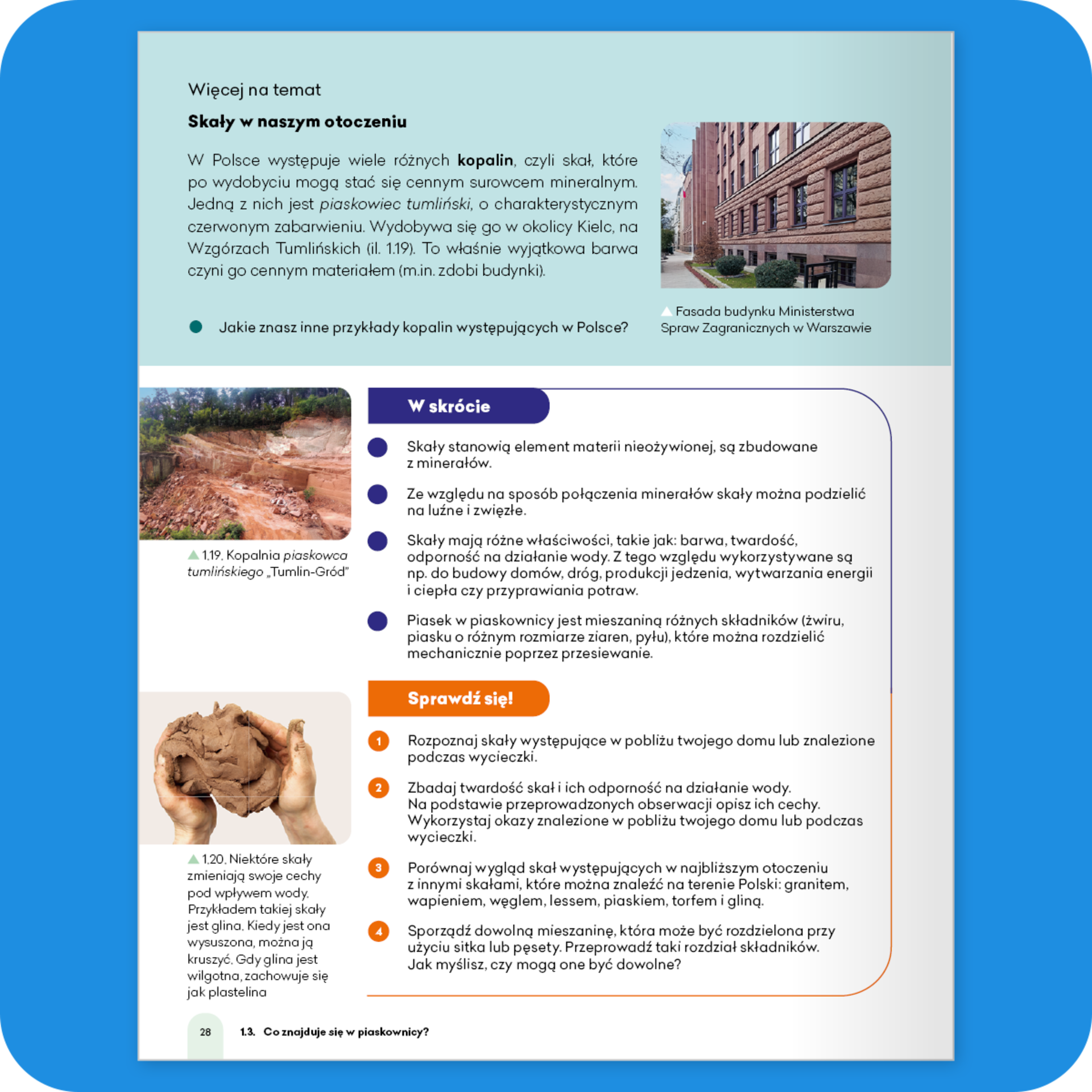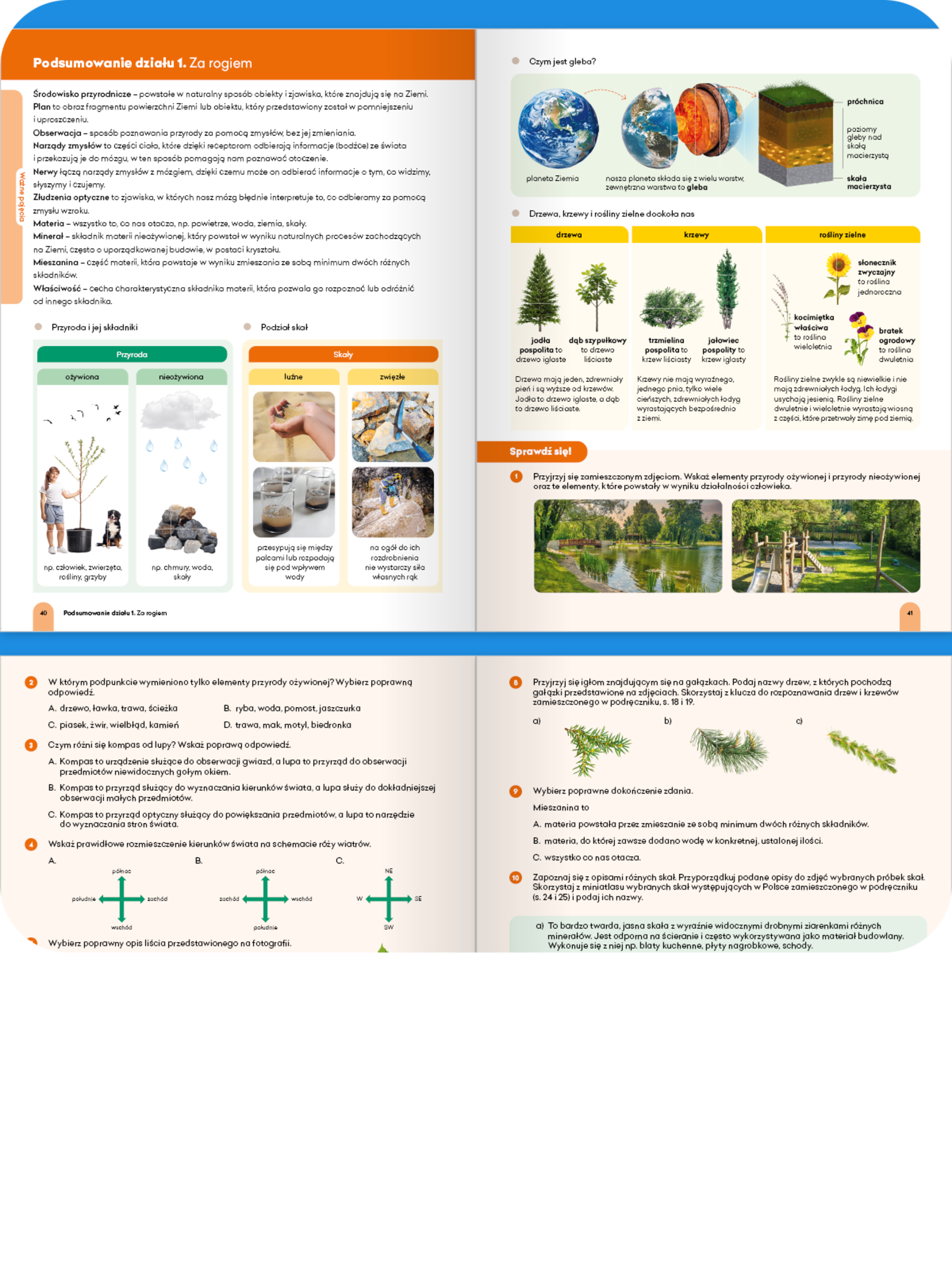 Sprawdź się! zawiera pytania i zadania sprawdzające wiedzę z zakresu omawianego materiału. Propozycje różnorodnych zadań uwzględniają zajęcia terenowe.