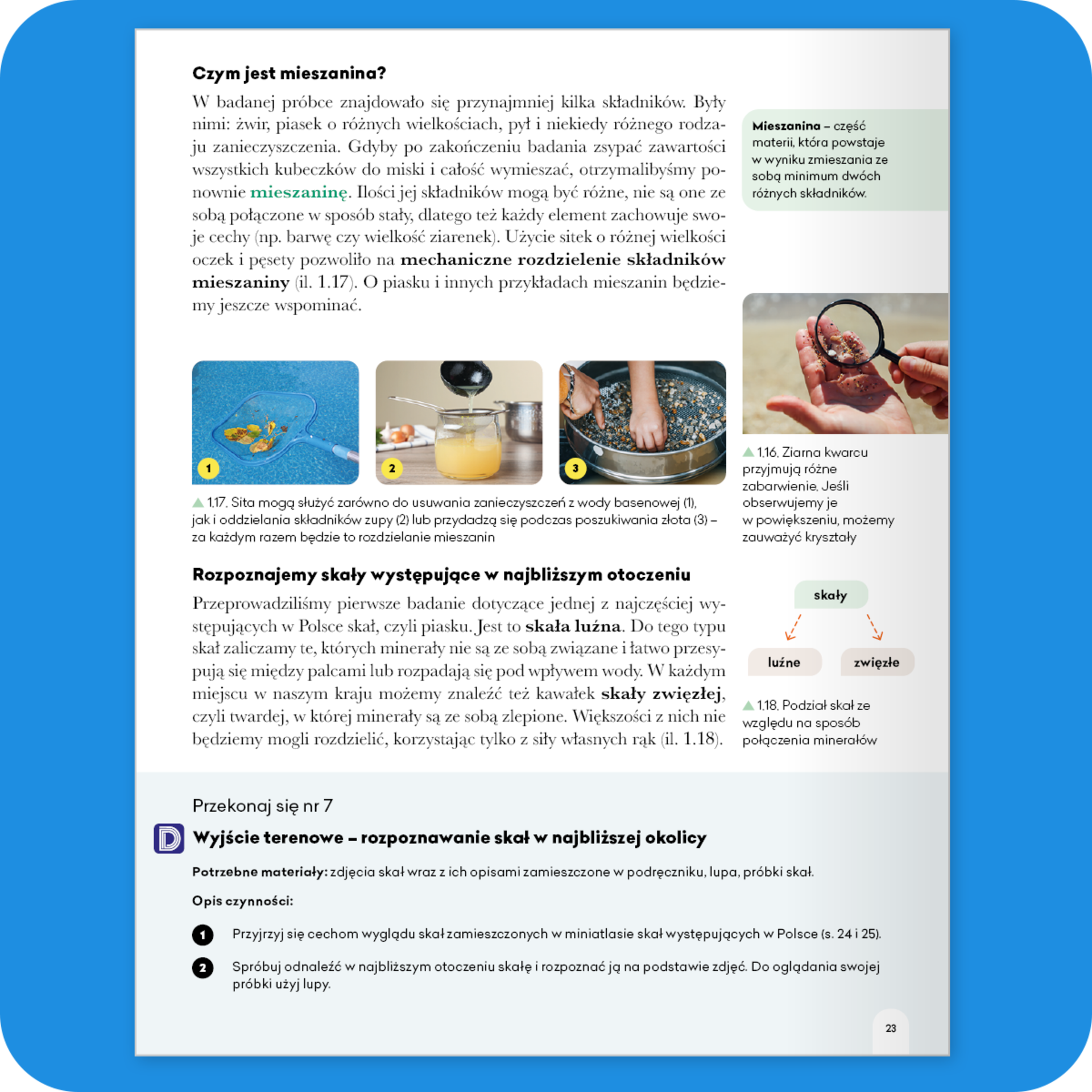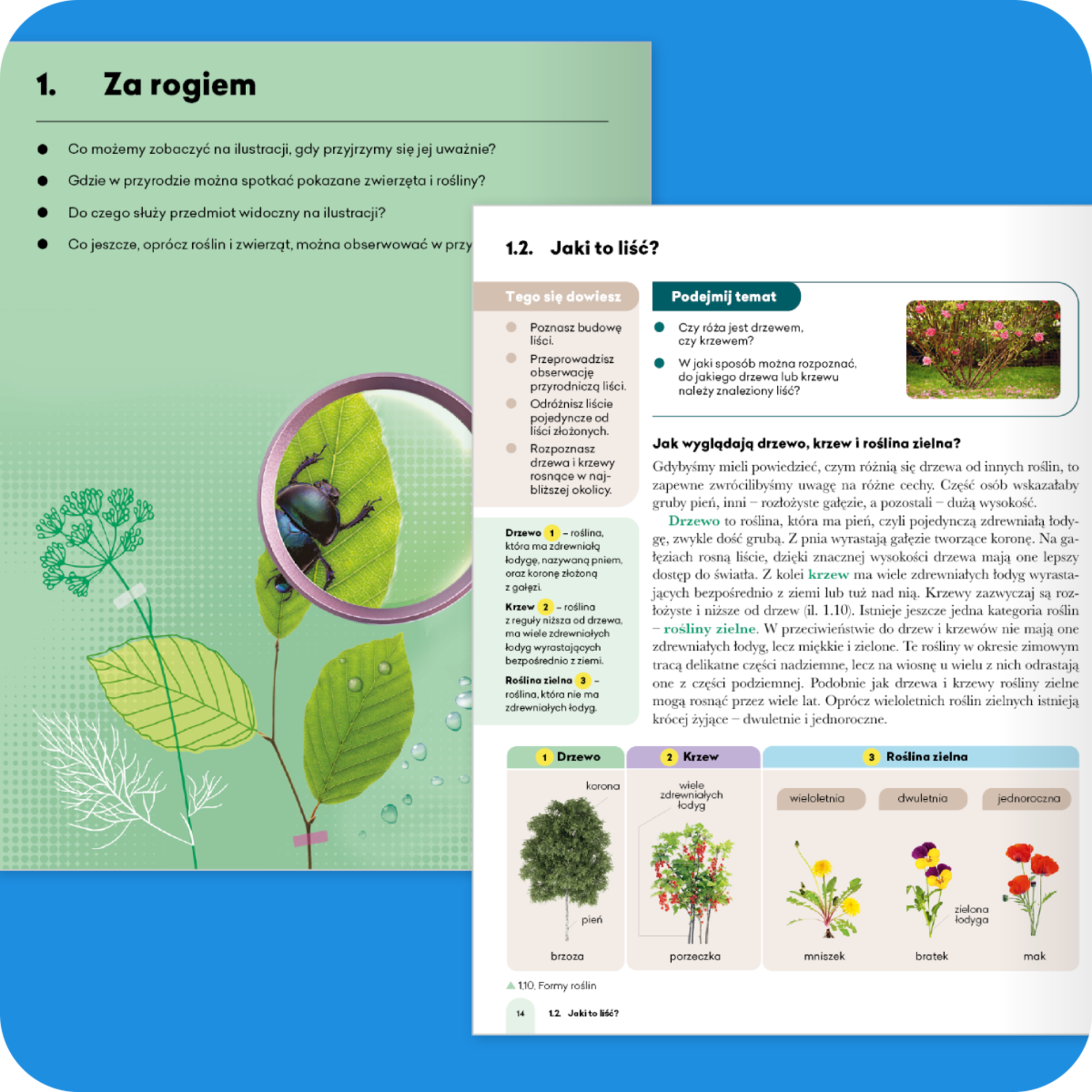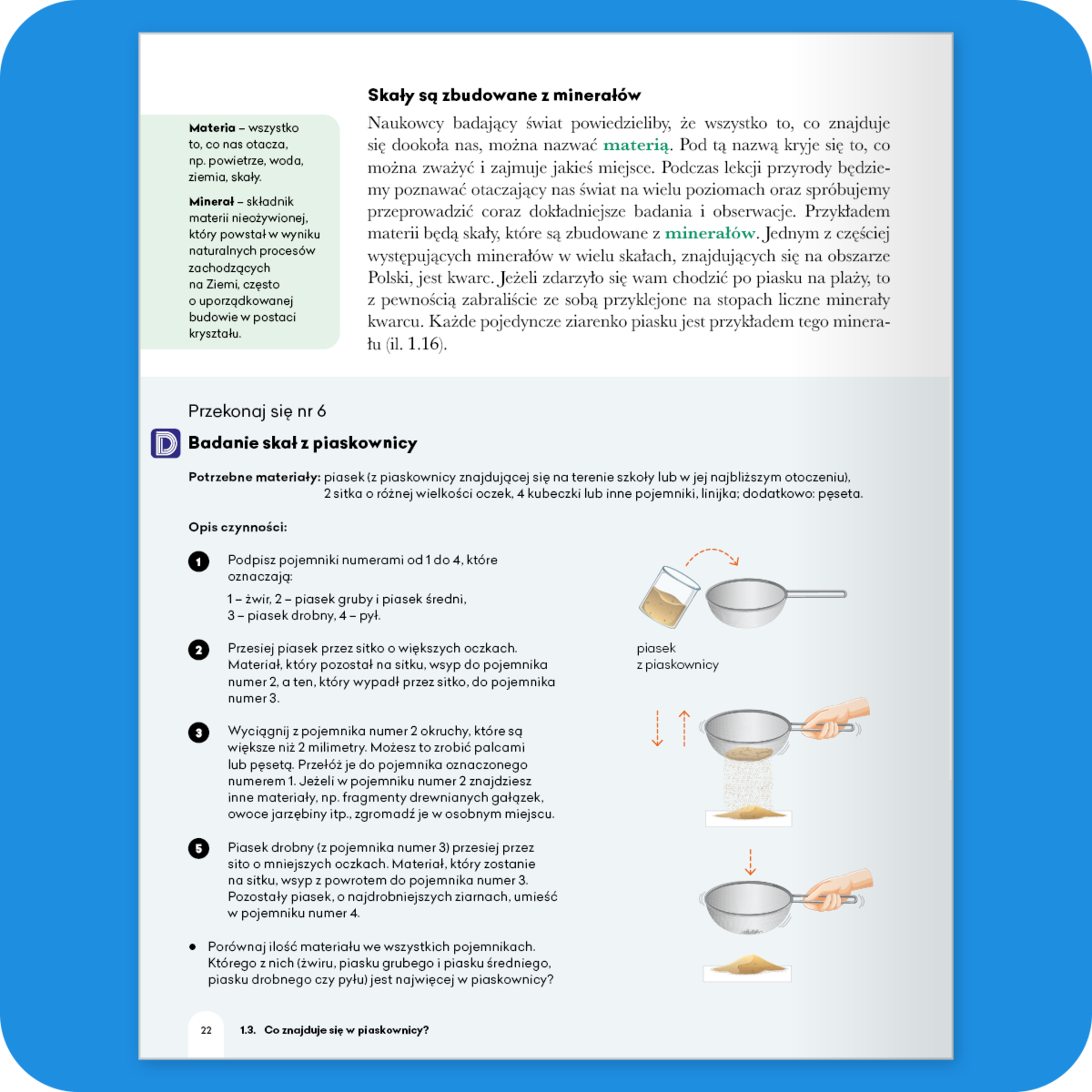 Podręcznik umożliwia realizację każdego przyrodniczego doświadczenia edukacyjnego w sali lekcyjnej i podczas zajęć terenowych.