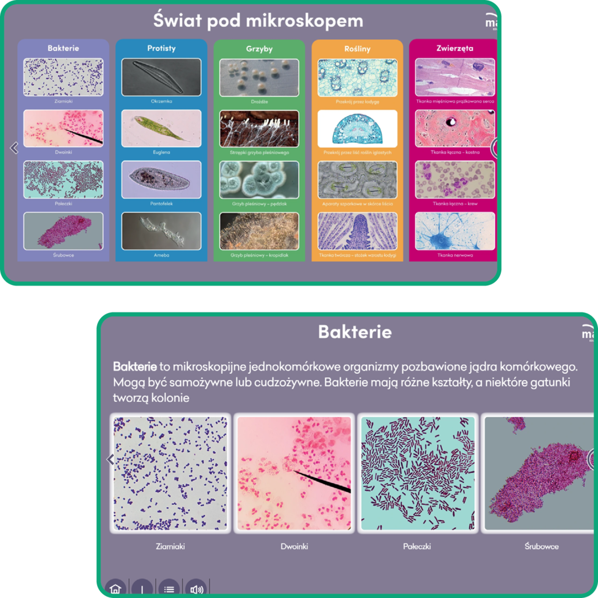 Doświadczenia edukacyjne oznaczone są specjalną ikoną, dzięki czemu nauczyciel i uczniowie mogą szybko i wygodnie odnaleźć potrzebne zagadnienia.