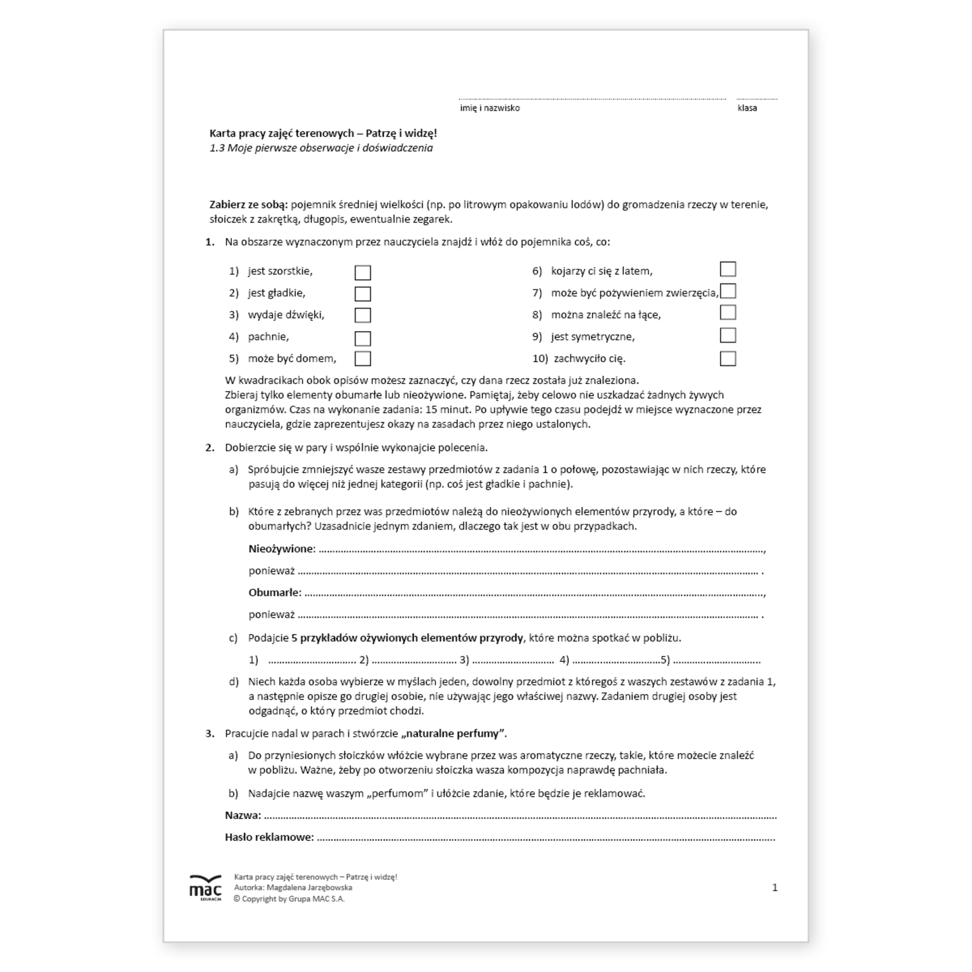 - Gotowe propozycje kart pracy do zajęć terenowych.